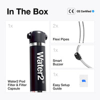 - The Pod 2.0’s stated reduction performance is based on controlled laboratory testing. Actual performance may vary due to factors such as water quality, flow rate, and individual usage conditions. These results are specific to the testing environment and should not be interpreted as indicative of performance in all real-world applications. Please get in touch at hello@water2.com for more detailed information on specific testing conditions.